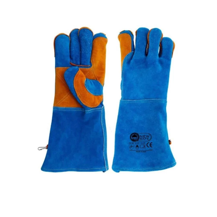 چرم طبیعی آلمانی درجهیک طراحی بلند برای محافظت تا ساعد مقاوم در برابر حرارت، جرقه و سایش آستر نرم و ضد تعریق دوخت تقویتشده صنعتی از برند نیوسیف