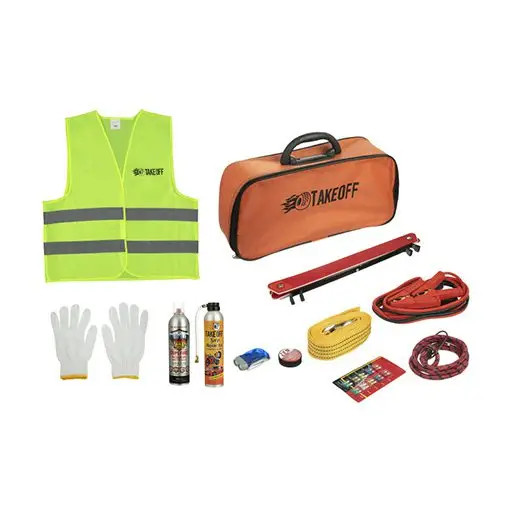 کیف محکم شامل ۱۳ کالای مختلف شامل: کبسول اتش نشانی – سیم بکسل با تحمل فشار ۳ تن – کابل باتری ۳۰۰ میلی امپری – مثلث خطر شب نما – – اسپری بنچری – دستکش – چراغ قوه – طناب کشی قلاب دار – بستهی فیوز خودرو (ده عدد) – چسب برق – بست کمربندی – کیف نارنجی تیک اف امداد خودرو – قابلیت اتصال کیف به کف صندوق عقب (چسب پارچهای) – قابلیت حمل آسان – وزن کامل: ۳.۴ کیلوگزم – ابعاد: ۱۲ × ۲۳ × ۴۵ سانتیمتر