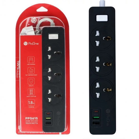 چندراهی برق و شارژر پرووان مدل PPS615 طول 1.8 متر