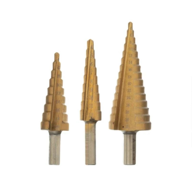 فولاد تند بر HSS با روکش تیتانیوم 4-12 میلیمتر 20-4 میلیمتر 32-4 میلیمتر ابزار را می توان با فرزها بورینگ ها، دریل دستی ،دریل رادیال و ستونی، انواع دستگاه تراش و فرز NC، انواع دستگاه های تراش CNC و فرز های CNC مورد استفاده قرار داد. از ابزار مخروطی می توان برای حکاکی بر روی چوب و فلز استفاده نمود. این مته ها در سایزهای 4 تا 12 ، 4 تا 20 و 4 تا 32 در اندازه های زوج می باشند. این محصول قابلیت سوراخ کاری بر روی آهن ، برنج ، مس ، آلومینیوم ، چوب و پلاستیک را دارا می باشد.