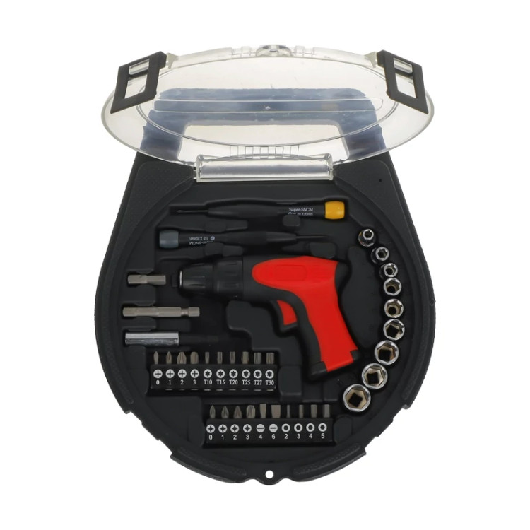 دارای 20 عدد سری آچار پیچ گوشتی - دارای 9 عدد سری آچار بکس به شماره 4.5، 5.5، 6، 8، 9، 10، 11، 12، 13 - دارای 3 عدد سری تبدیل - دارای یک عدد پیچ گوشتی مچی 2 سو - دارای یک عدد پیچ گوشتی مچی 4 سو