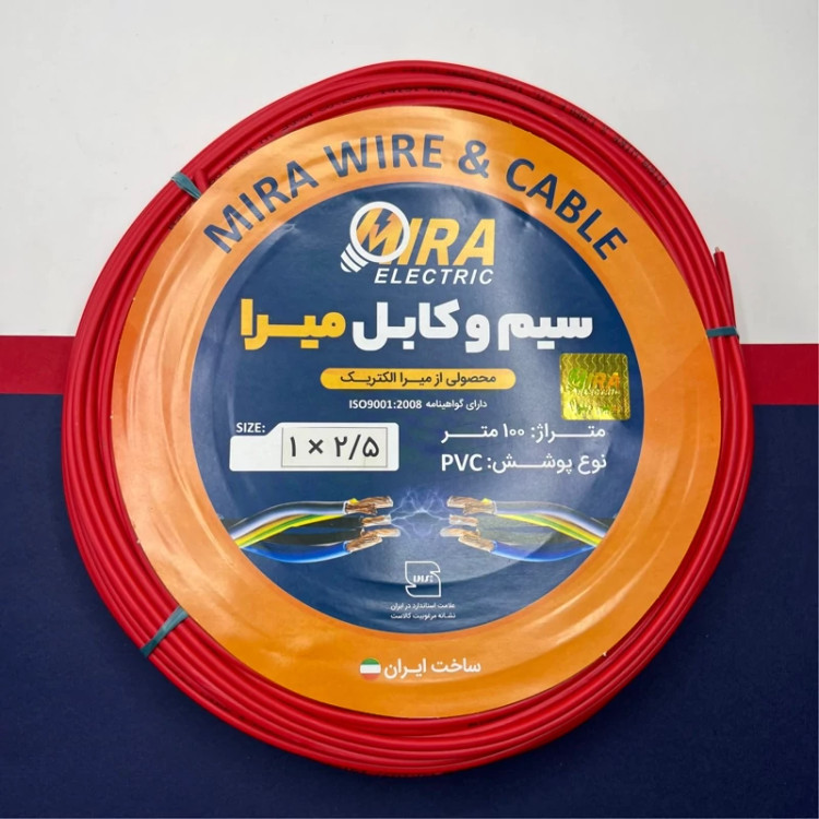 سیم برق افشان 1 در 2.5 میرا رنگ قرمز 100 متر